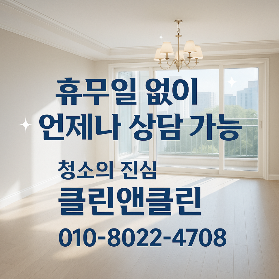 클린앤클린은 약속 시간을 철저히 지키며, 작업 전 충분한 설명과 작업 후 꼼꼼한 피드백으로 **고객 만족도 100%**를 목표로 합니다.